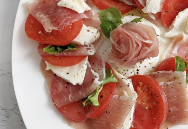 カプレーゼは生ハムでパーティー仕様に!オシャレなアレンジ術とは食・料理オリーブオイルをひとまわし。