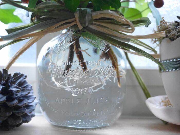 可愛い瓶のりんごジュース マルティネリ コストコで購入 キレイキレイでリメイク 結婚式のプチギフトにも - 山形県 かみのやま温泉さ、きてけろ~。
