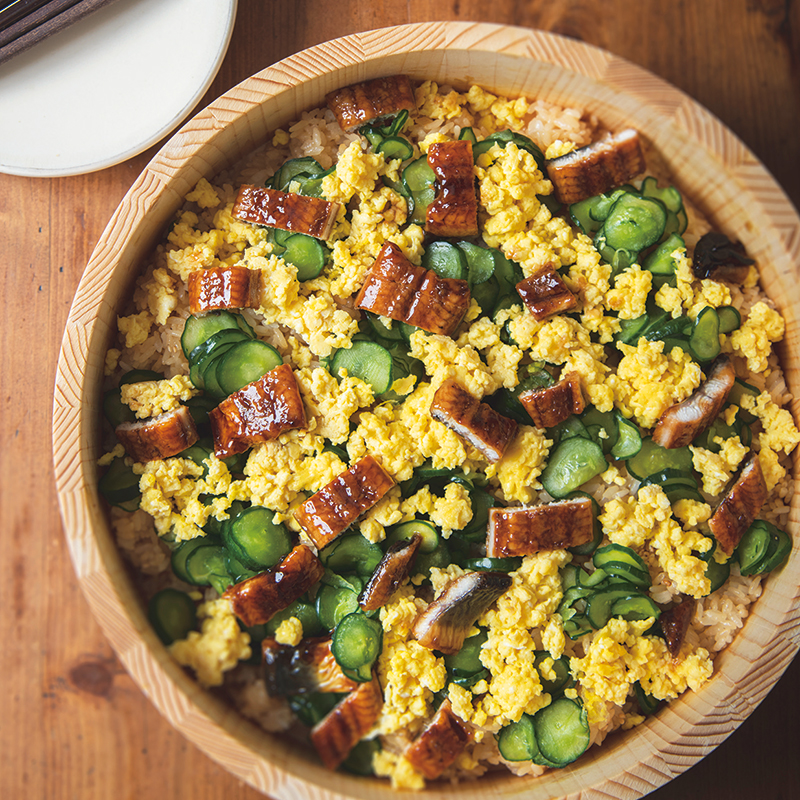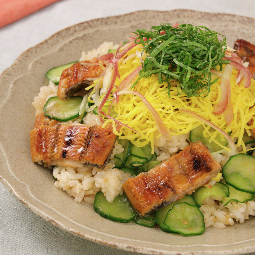 「ウナギときゅうり、炒り卵のちらしずし」レシピ 行正り香さん。