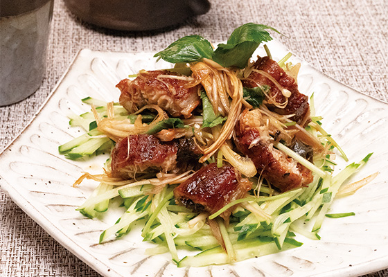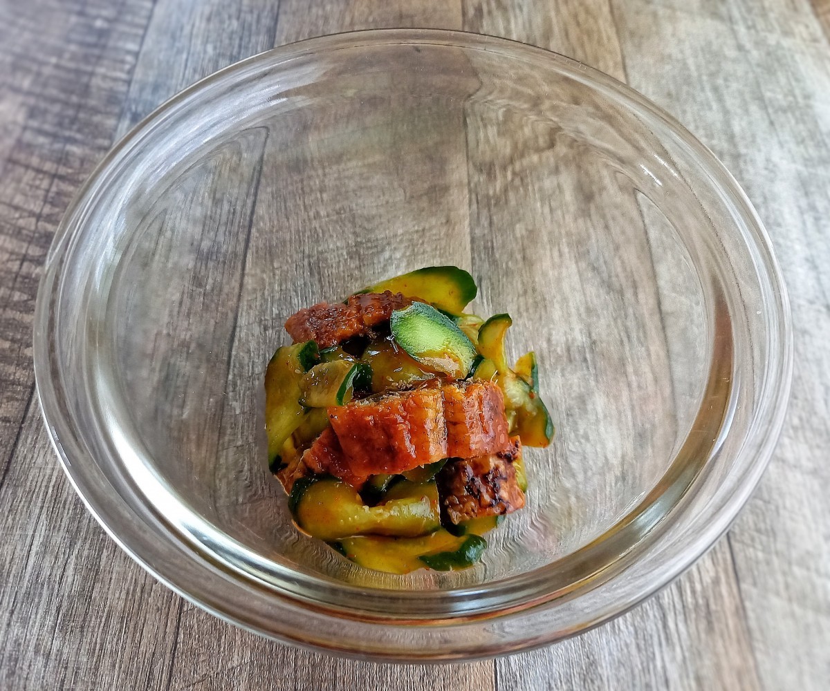 蒲焼きをアレンジ!うなぎときゅうりのピリ辛和えのレシピ。