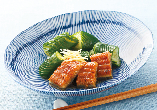 おつまみレシピ ガツンとスタミナ系!⑥梅干しでさっぱり”うざく” うなぎときゅうりの酢の物。