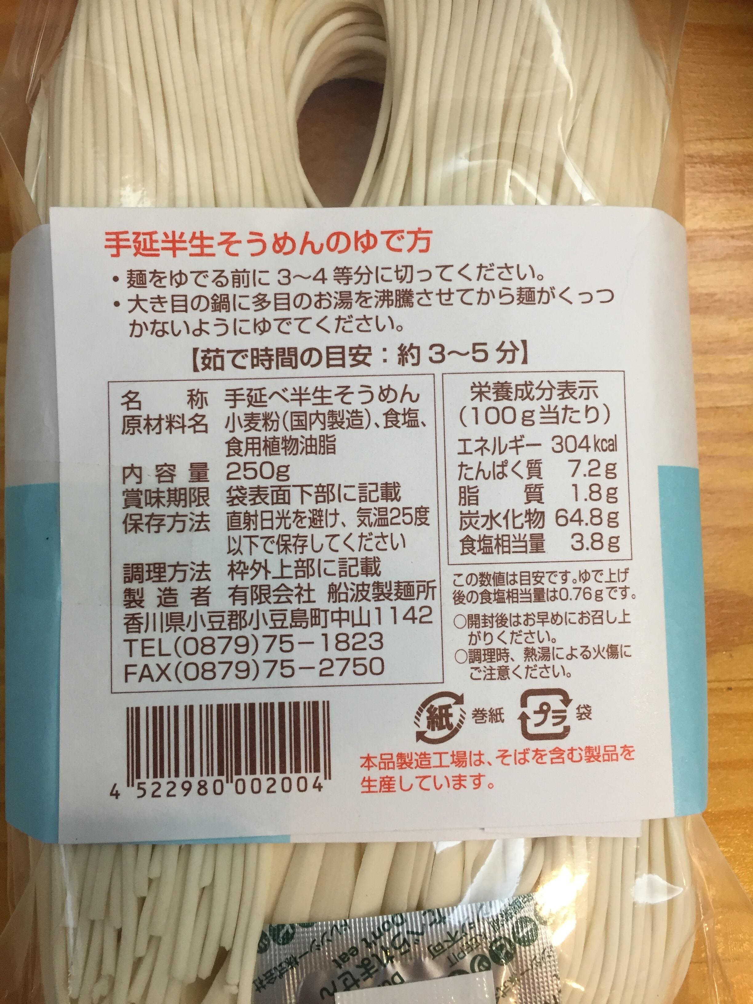 お土産図鑑 小豆島手延べ 半生そうめん 船波製麺所おみナビ。