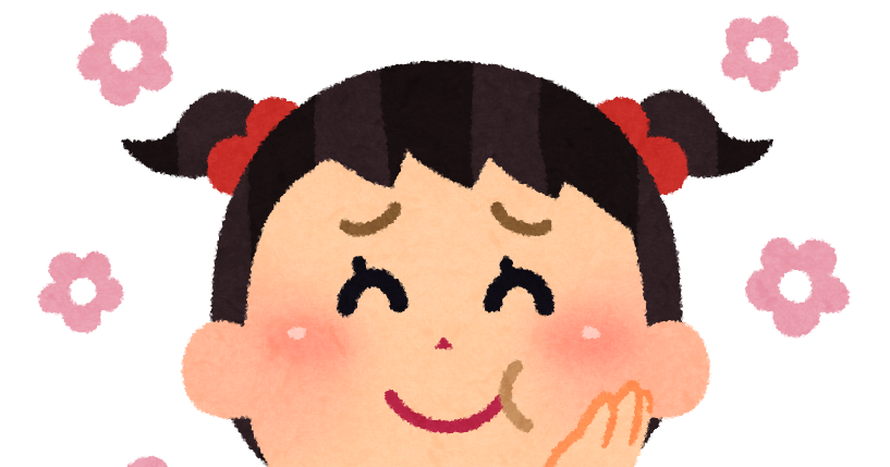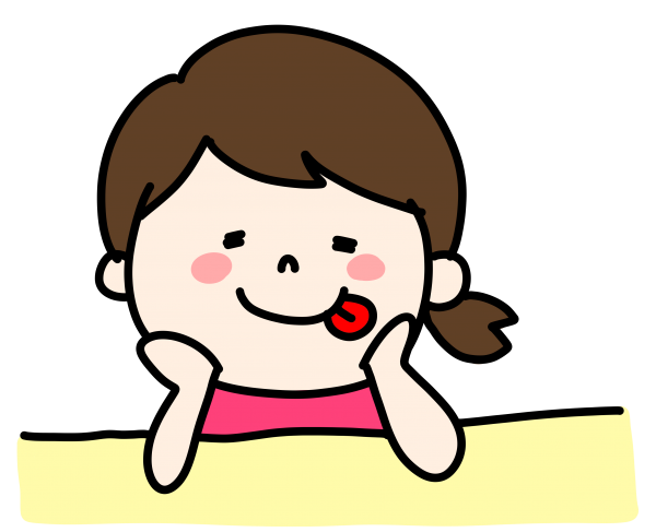 美味しい表情の子供 女の子1 の無料 フリー イラストかわいい手描きの無料素材「てがきっず」保育園・小学校・介護施設にぴったりのフリー素材イラスト。