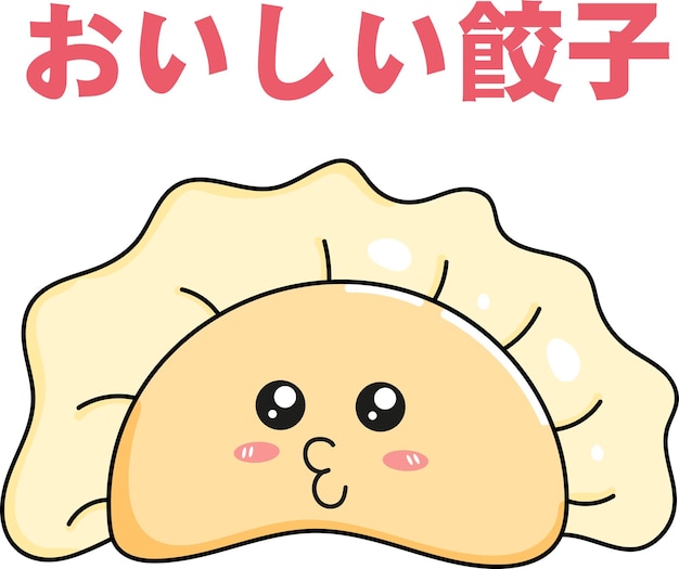 かわいいスタイルの面白い餃子 イラストの上部にあるテキストの翻訳は陽気な餃子ですPremiumベクトル素材。