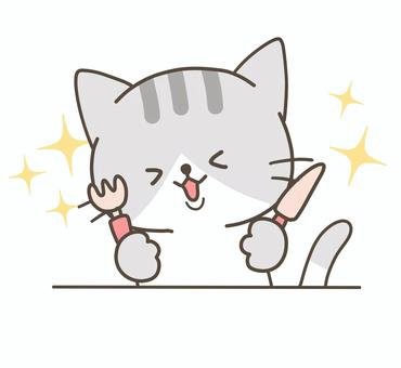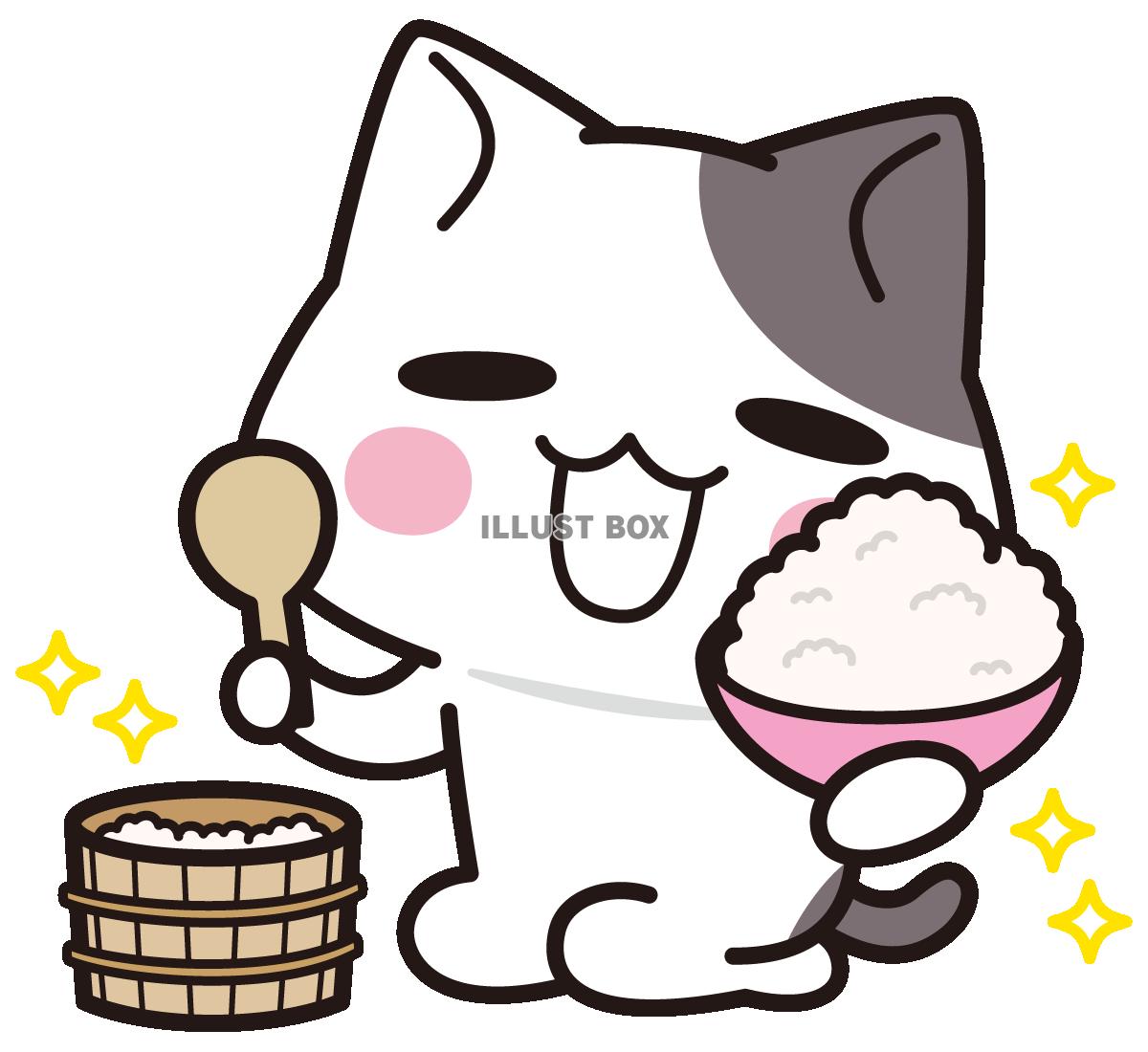 美味しいご飯<ぶち猫 にゃんこ>:イラスト無料。