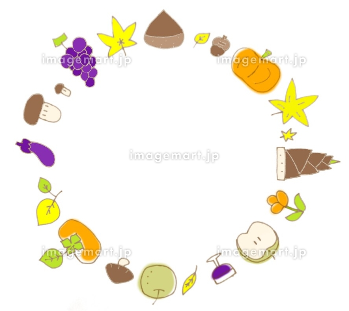 秋の味覚、美味しい食べ物がゆっくりまわる、かわいい茶系色のリース。のイラスト素材197687826- イメージマート。