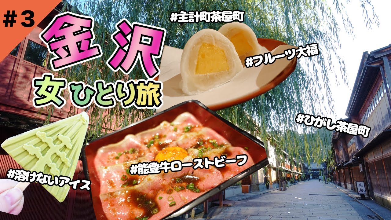 金沢旅行vlog3 溶けないアイス?!からのフルーツ大福&能登牛ローストビーフ!!金沢三大茶屋街で食べ歩き!ひがし茶屋街 主計町茶屋街 女ひとり旅。