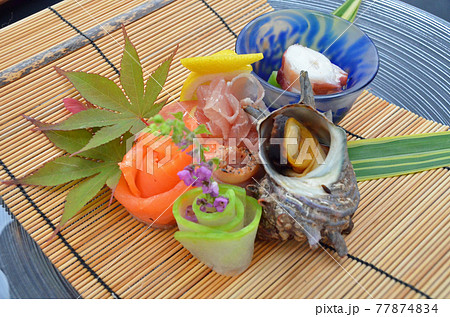 夏の海鮮料理を涼しい雰囲気で盛り付けてみたの写真素材77874834- PIXTA。
