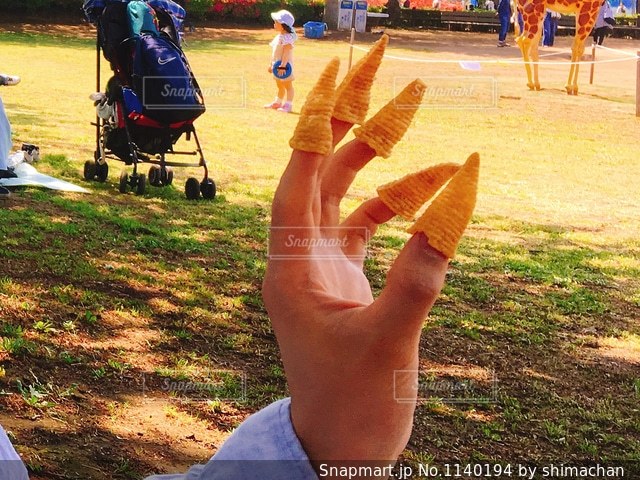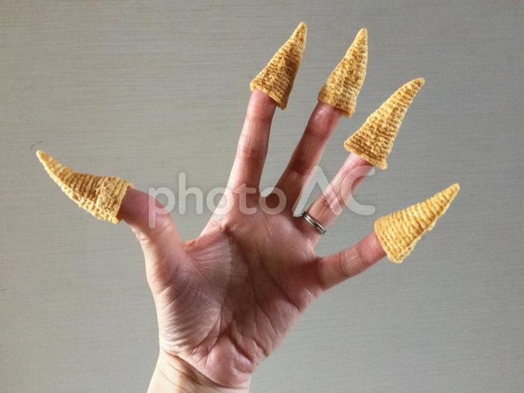 とんがりコーンを指にはめる - No: 916807写真素材なら「写真AC」無料 フリー ダウンロードOK。