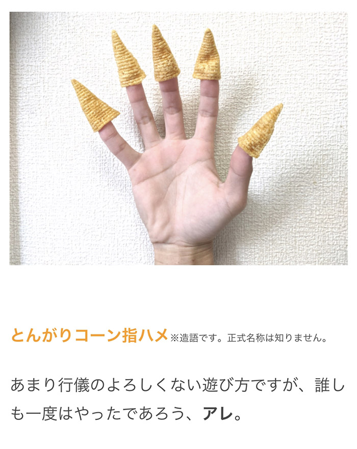 とんがりコーンを指にはめるのはもはや習性!?初めてのとんがりコーンに女の子がとった行動とは?おたくま経済新聞。