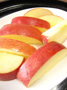 りんごのかわいい切り方 スティック、ストライプ、木の葉実験オレンジページnet。