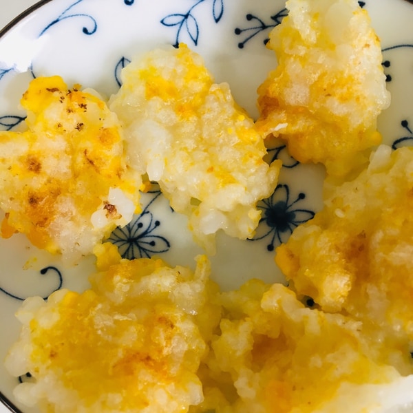 手づかみ離乳食 納豆入りご飯のお焼き。