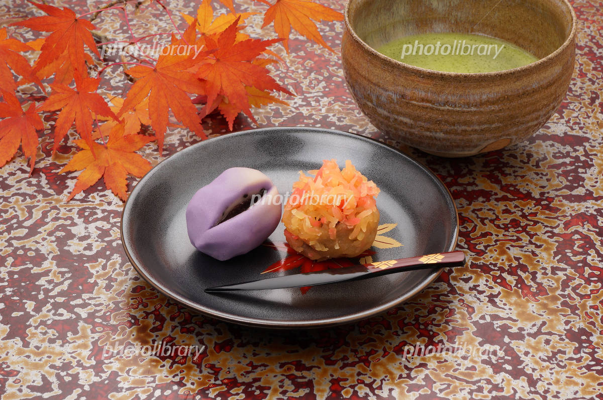 秋の和菓子と紅葉 写真素材4099426- フォトライブラリ。