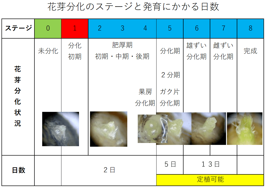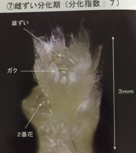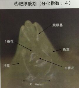 さちのか花芽分化の顕微鏡検査2いちごの生産・販売・いちご狩り TARO タロウ 山口県岩国市由宇町。