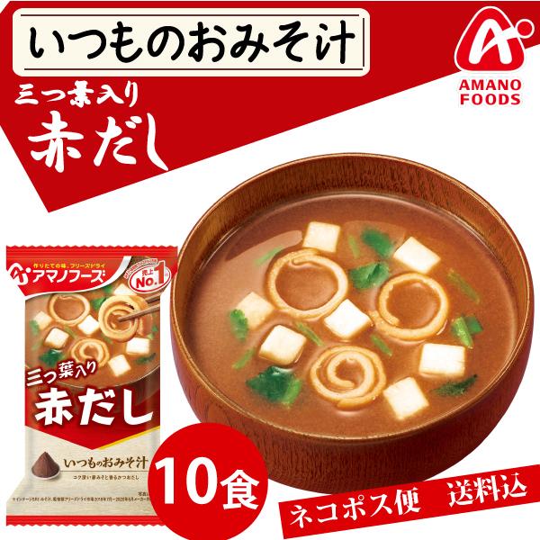 アマノフーズ いつものおみそ汁 赤だし 三つ葉入り 10食 ネコポス便 全国送料込 フリーズドライ みそ汁 味噌汁 簡単 インスタント :korezo店 - 通販 - Yahoo!ショッピング。