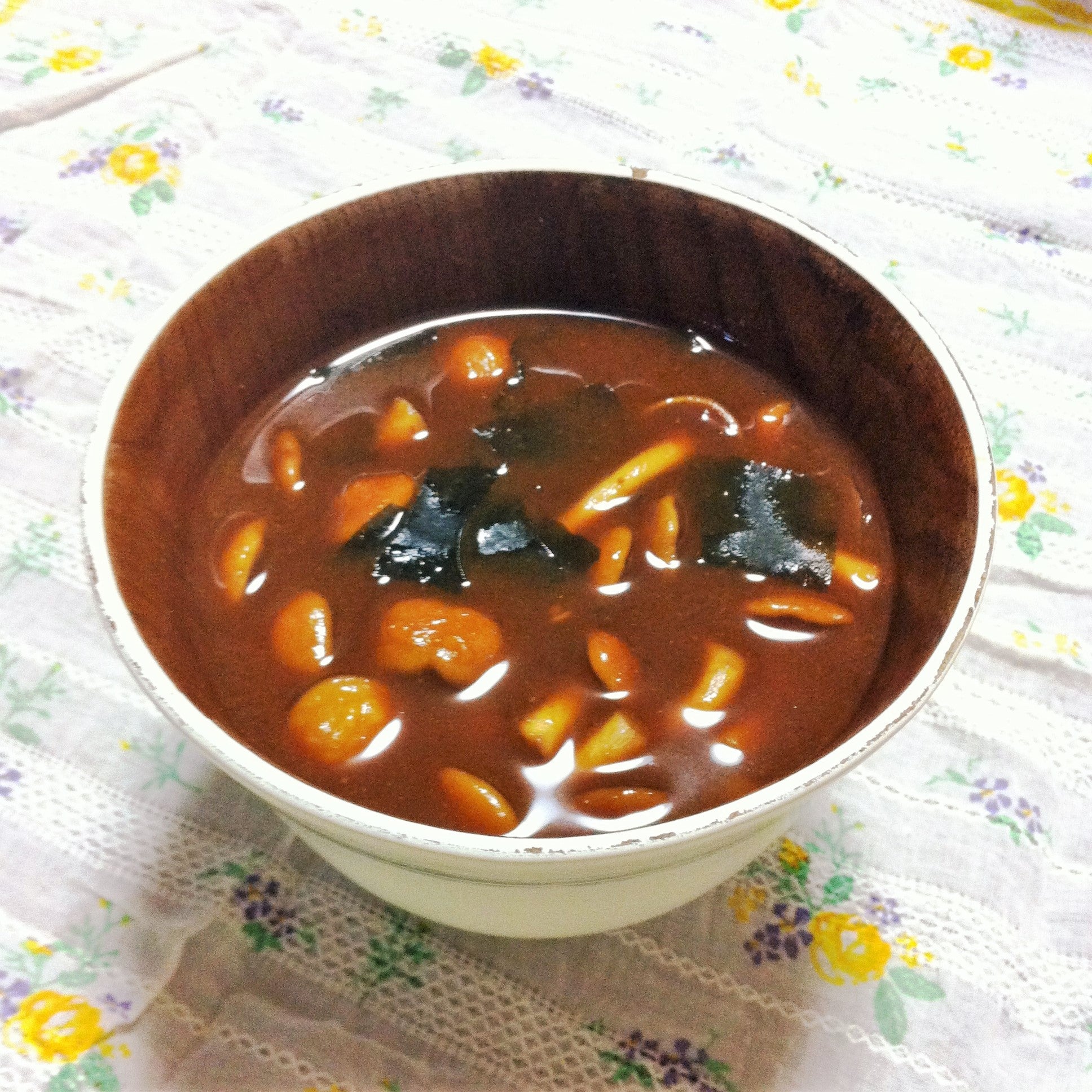 素材を生かした味噌汁 なめこの赤だし無印良品。