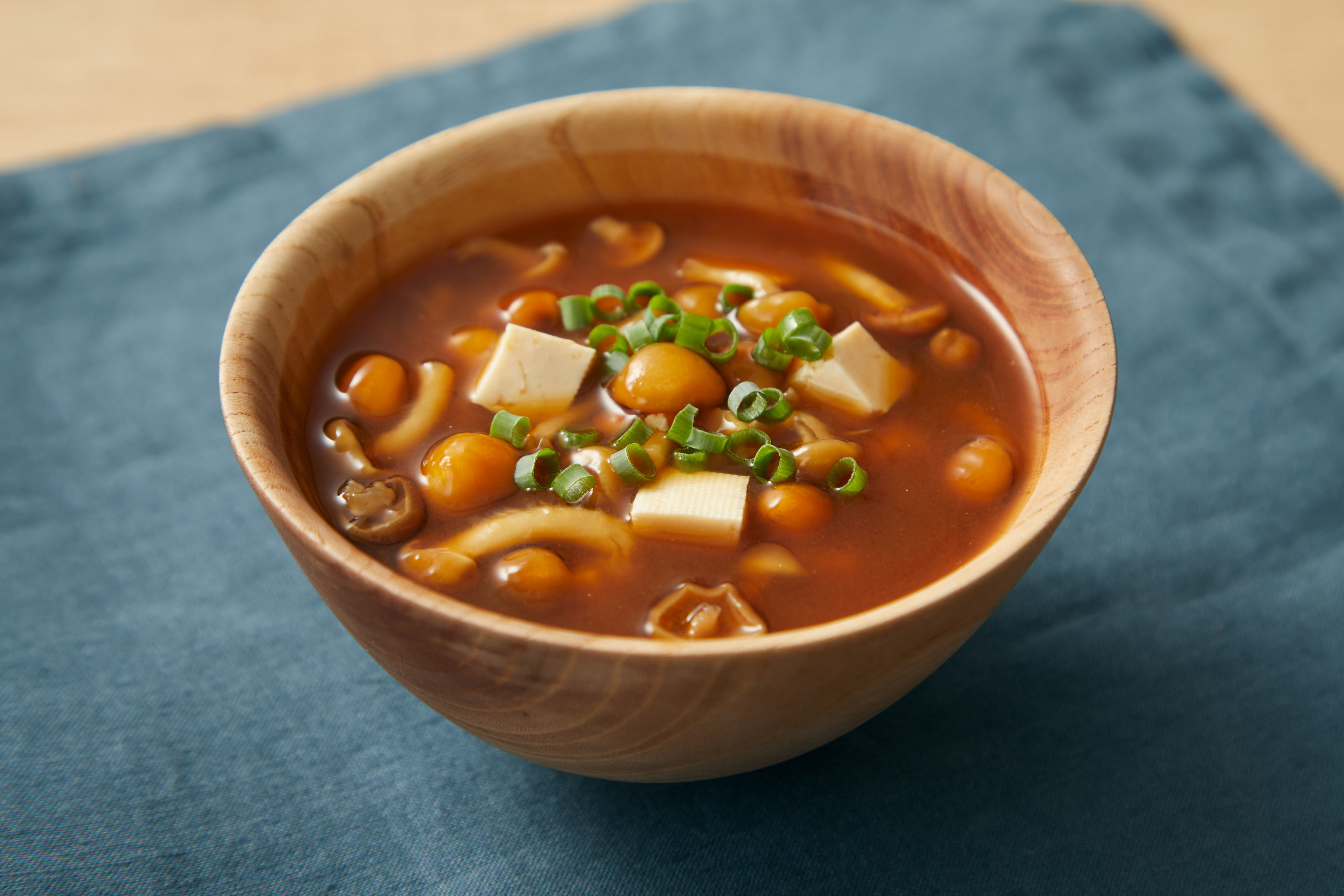 レシピ 煮干し出汁の「なめこと豆腐の赤だし味噌汁」東京ガス ウチコト。