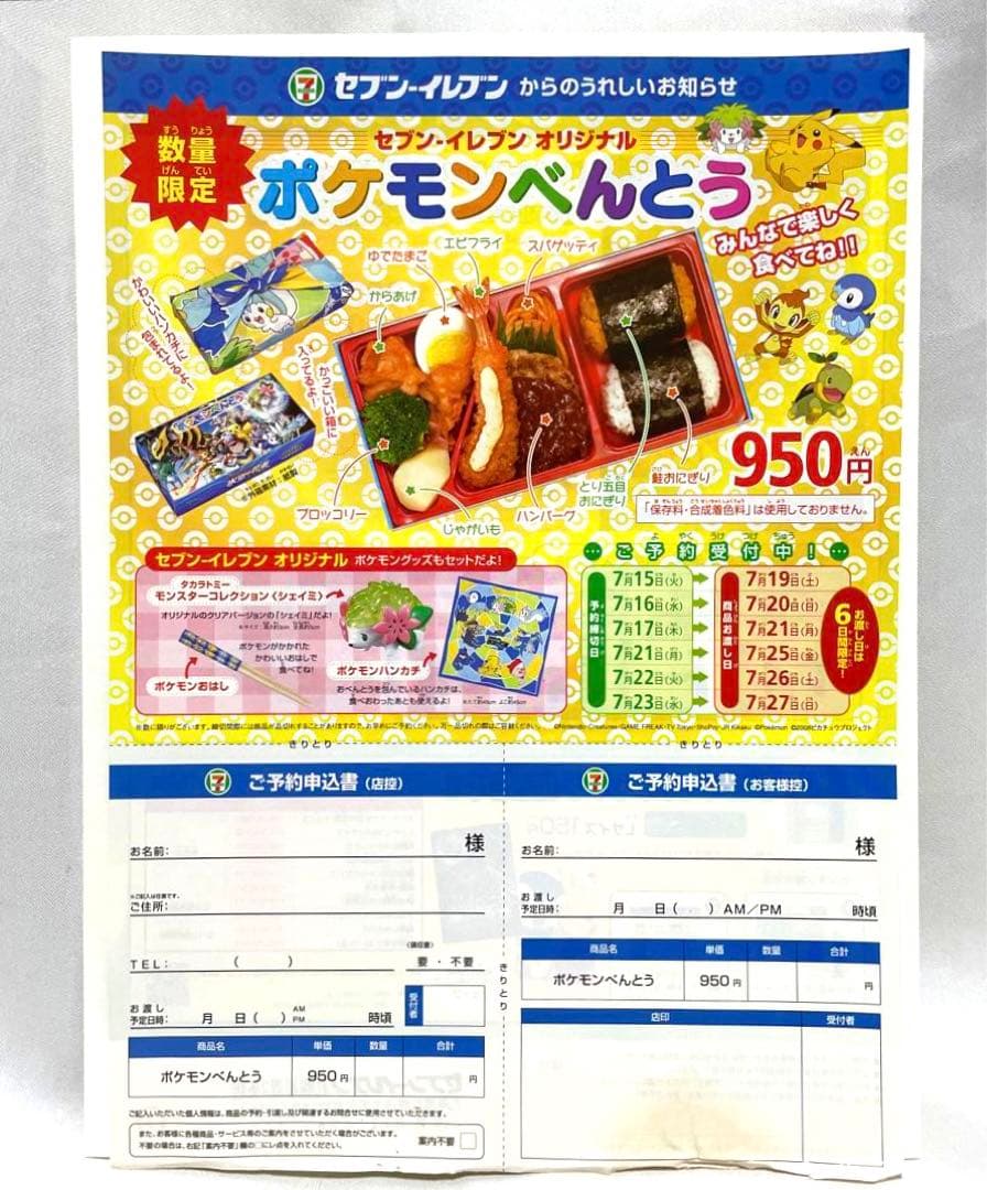 ポケットモンスター・セブン イレブン限定ポケモン弁当・ご予約申し込み書「チラシ」 - メルカリ。