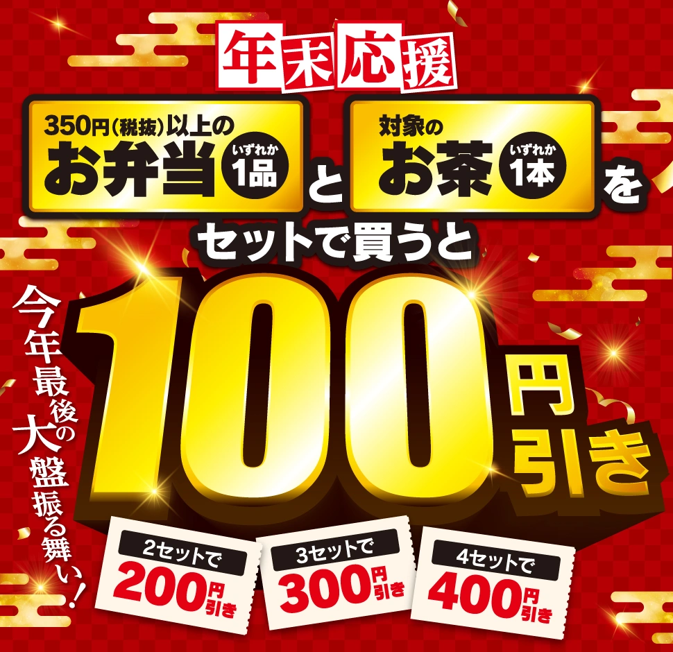 セブンイレブン「年末応援 お弁当+お茶セット購入で100円引き」キャンペーンを実施中、12月31日までお弁当とお茶がセットでお得! – コンビニチェッカ。