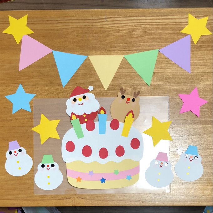 誕生日の壁面飾り 保育園 幼稚園 介護施設など 無料ダウンロード型紙で「クリスマスケーキ」。