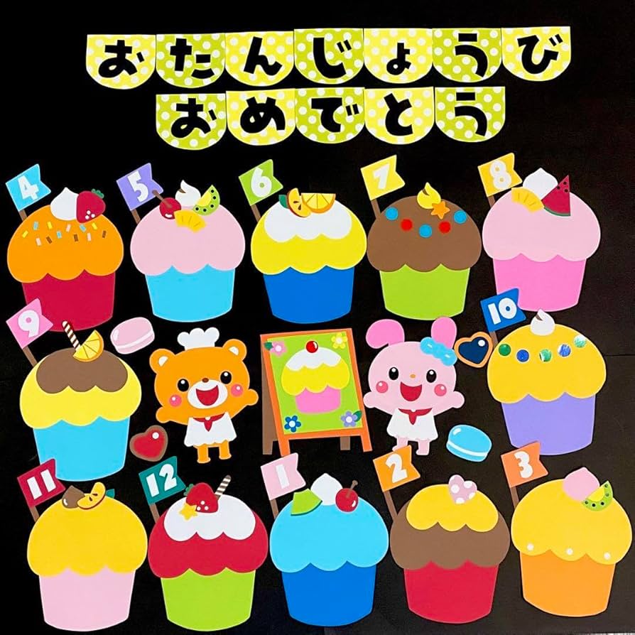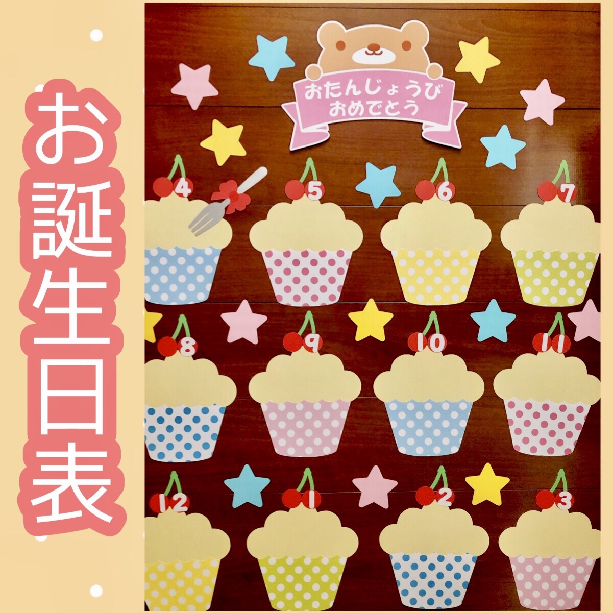 誕生日表 カップケーキ 壁面 保育園 施設 ガーランド はる 通販 17027547Creema クリーマ。
