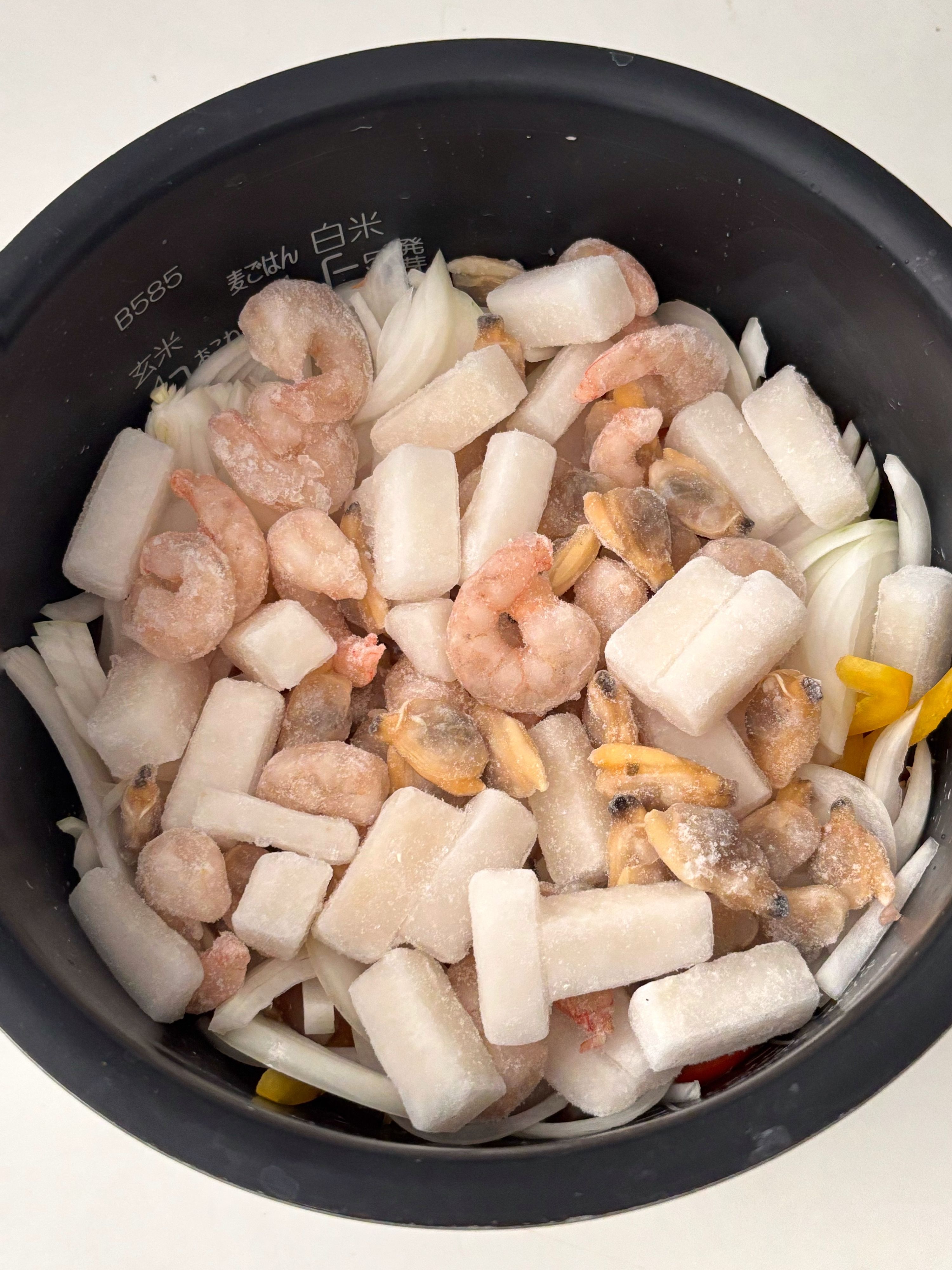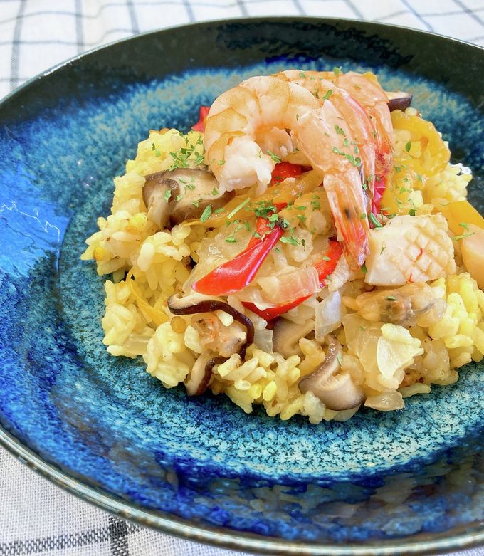 炊飯器でつくるシーフードパエリア。