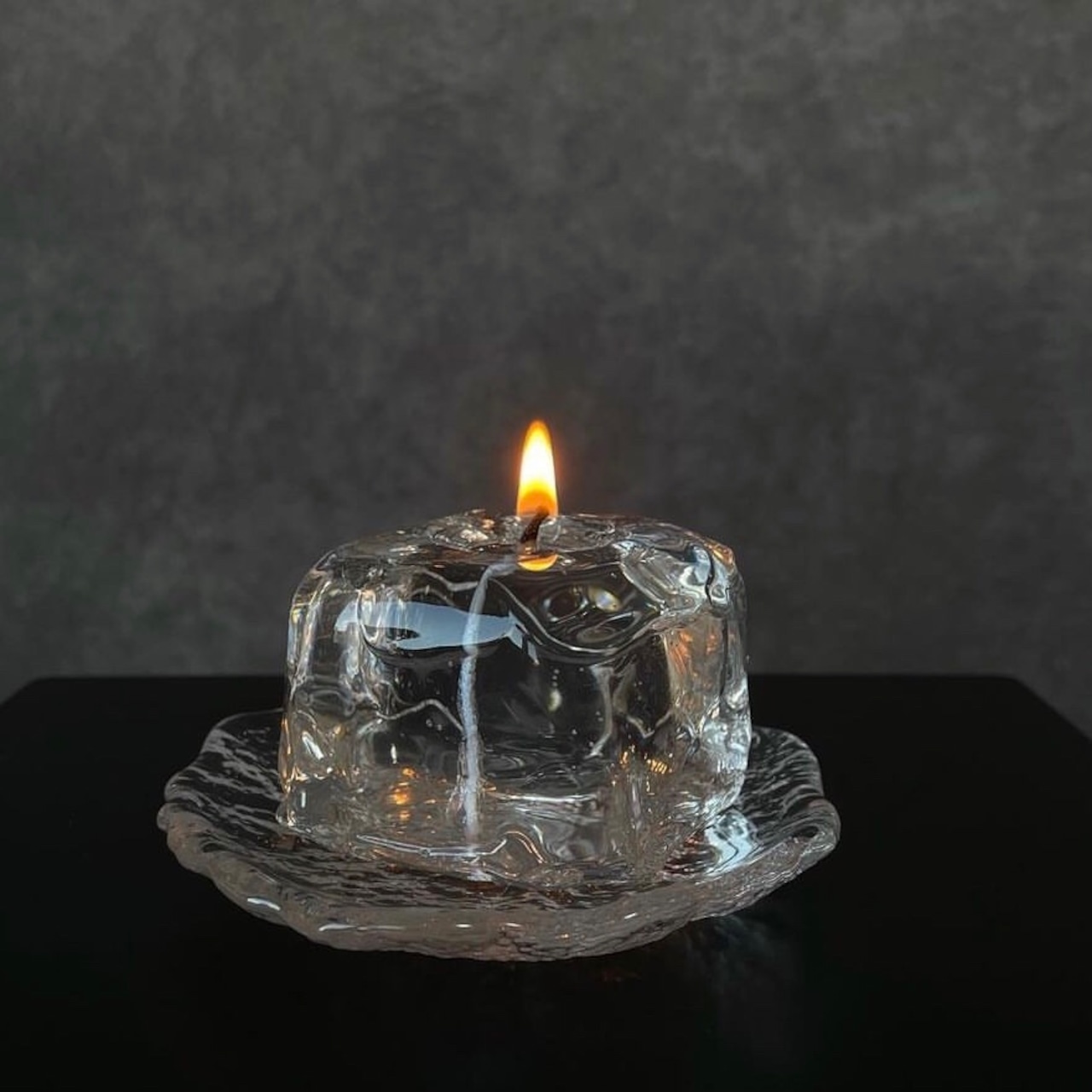 楽天市場 fluctuation フラクチュエーション 透明のキャンドル 氷のような透明なキャンドル 1点1点形が異なる無秩序なシンプルさが魅力の癒し キャンドル インテリアライトとして テーブルキャンドル 無香料で食卓でもOK 氷が解けていくような変化を楽しめる ジェル。