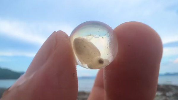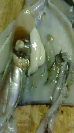 孵化直前のイカの卵切ったらぶりぶり生まれてきた。