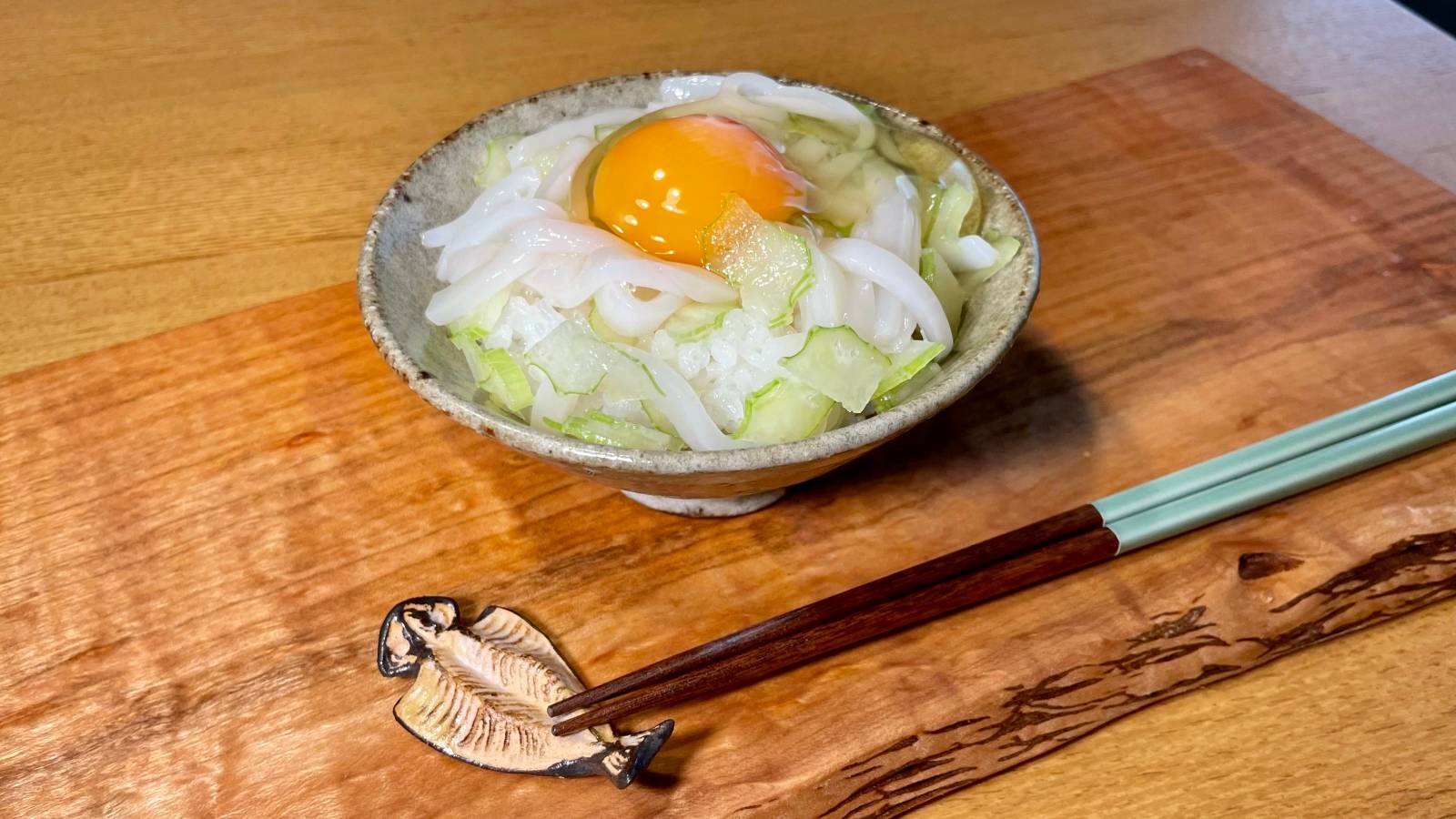 イカ刺しは生卵でもっとおいしく - くらしのちえ。