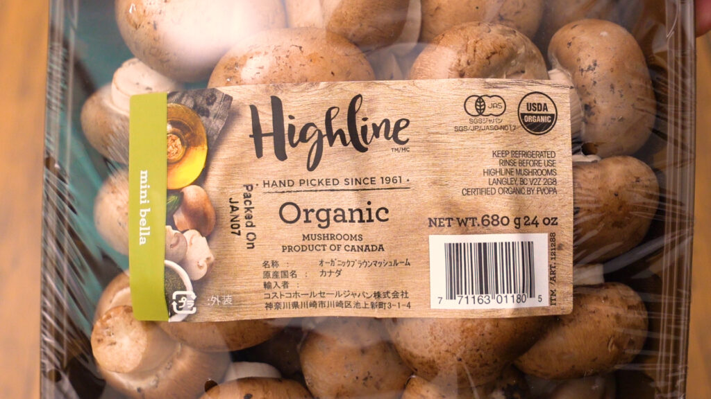 コストコ オーガニックブラウンマッシュルーム カナダ産の新鮮なマッシュルームはオーガニック商品です。