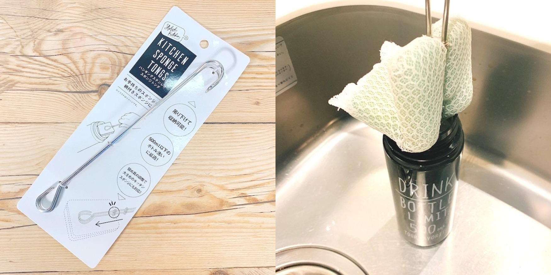 セリア 発想が素晴らしい!普通のスポンジに持ち手をつけれる「天才トング」水筒をガシガシ洗えるの 購入レビュー。