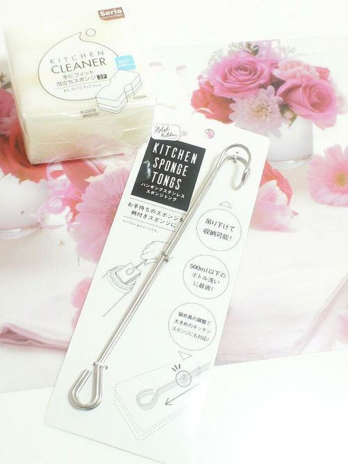 セリアで買えるハンギングステンレススポンジトング! セリアセリア購入品暮らしの道具主婦の知恵暮らしを楽しむ暮らしのヒント。