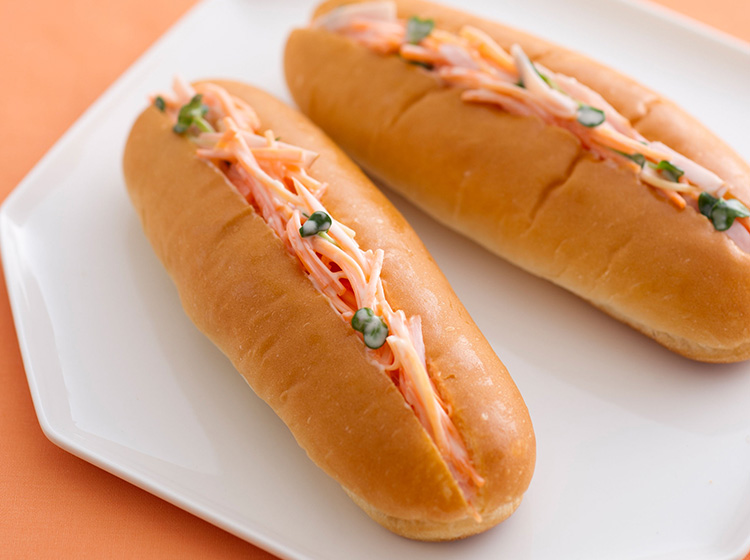 フランクのロールパンドッグ オーロラソース・チーズレシピ一覧レシピ米久株式会社。
