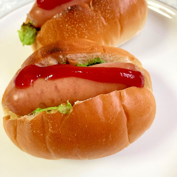 ロールパンのホットドッグ。