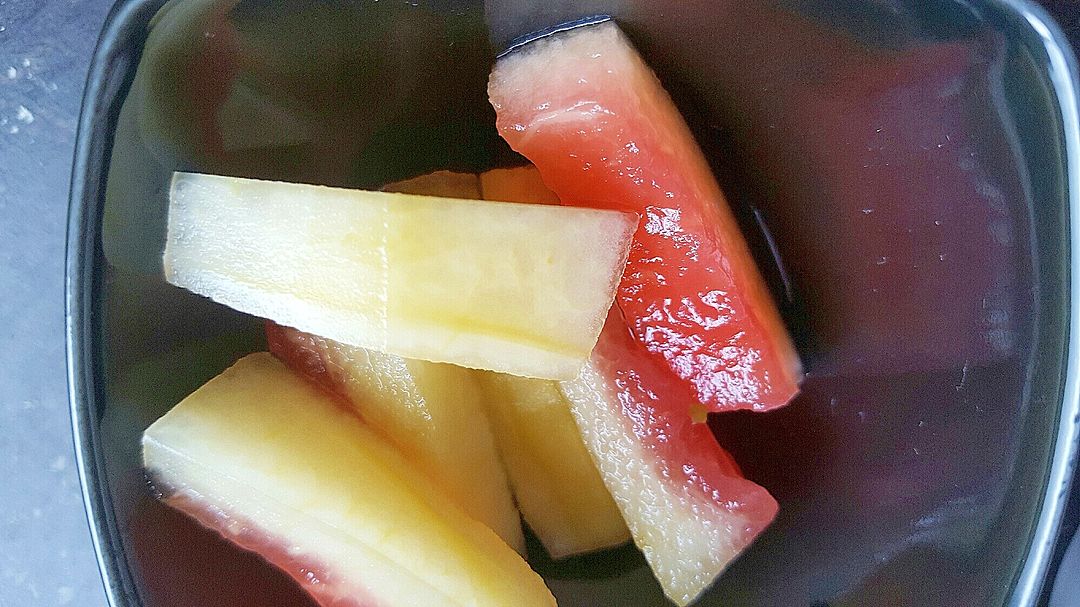 意外に美味しい節約レシピ☆西瓜の皮の漬物。