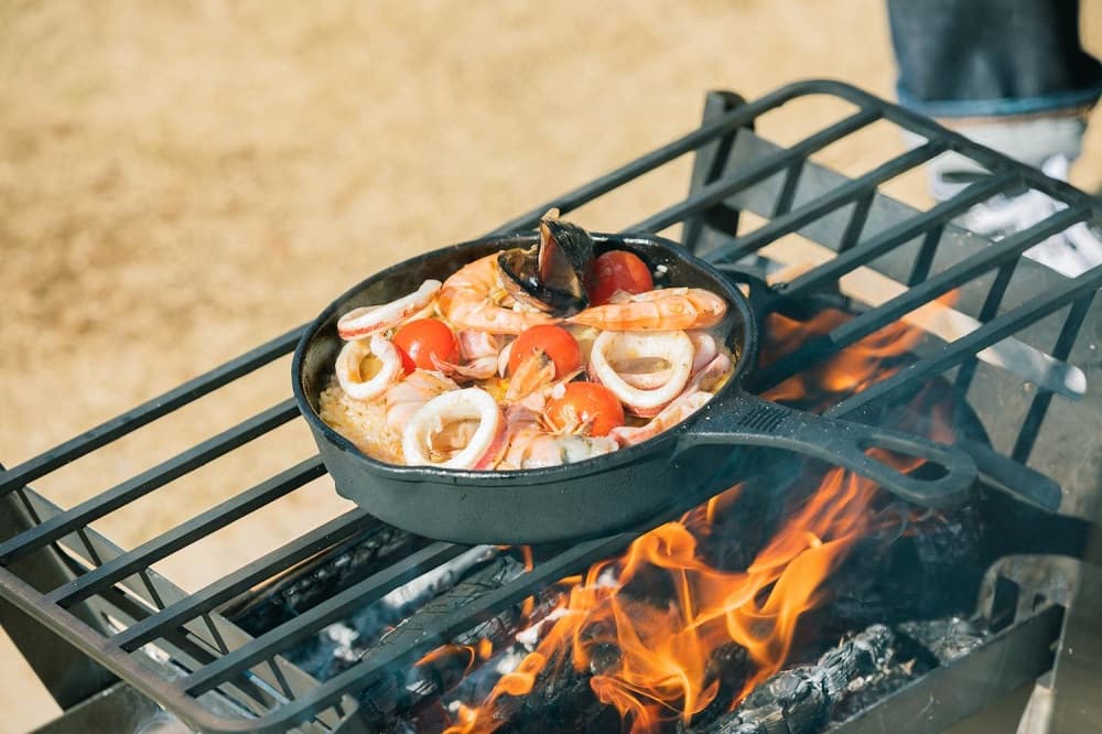 スキレットで作る海鮮パエリア - STRAYCATS - レンタルで行ける最上級キャンプ体験。