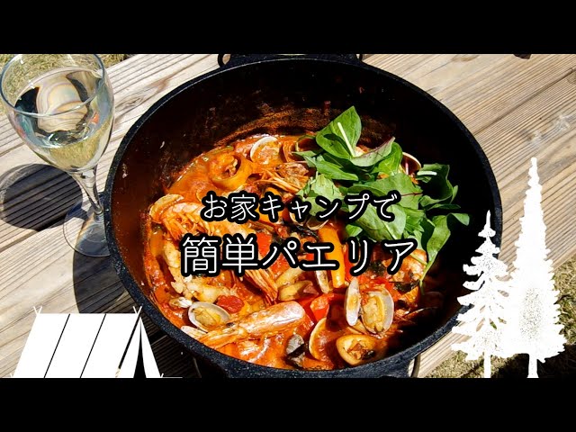 おうちキャンプで 簡単パエリア ガスコンロでも焚き火でも - YouTube。