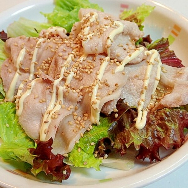 麺つゆマヨでサニーレタスと冷しゃぶのサラダ。