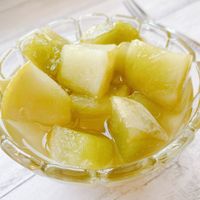 おうちで漬物・保存食47 この時期ならではの小メロン 摘果メロン で手軽な浅漬け2種、めんつゆ漬けと甘くない焼酎漬け梅ももあんず。