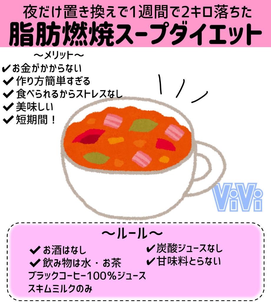 ViVi on X: " やってみた 1週間、夜ご飯を脂肪燃焼スープに置き換えしただけで2キロ減ったんです !1食置き換えだから飽きないのに結果でたからマジでおすすめです !https:t.co gtqKchhmiK"X。