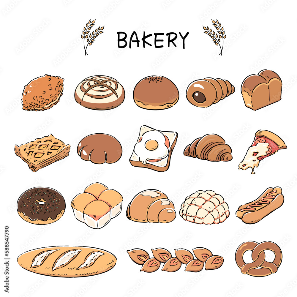 手描きのパンのイラストのセット かわいい シンプル 線のイラスト素材64197973- PIXTA。