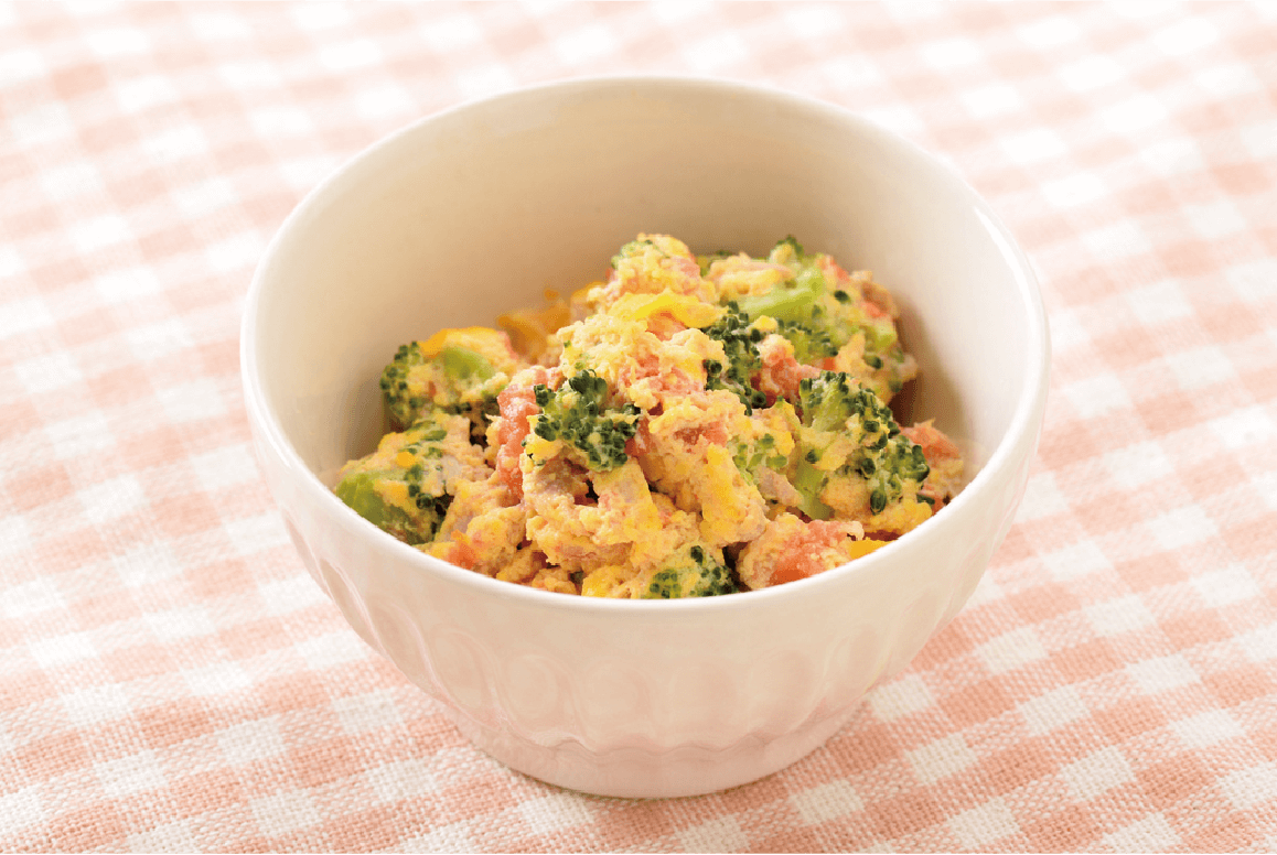 ツナとにんじんのスパニッシュオムレツの献立 副菜:ブロッコリー の粒マスタード和え、主菜:イタリアン風チーズ入り芋煮 献立・メニュー 味の素パーク たべる楽しさを、もっと。