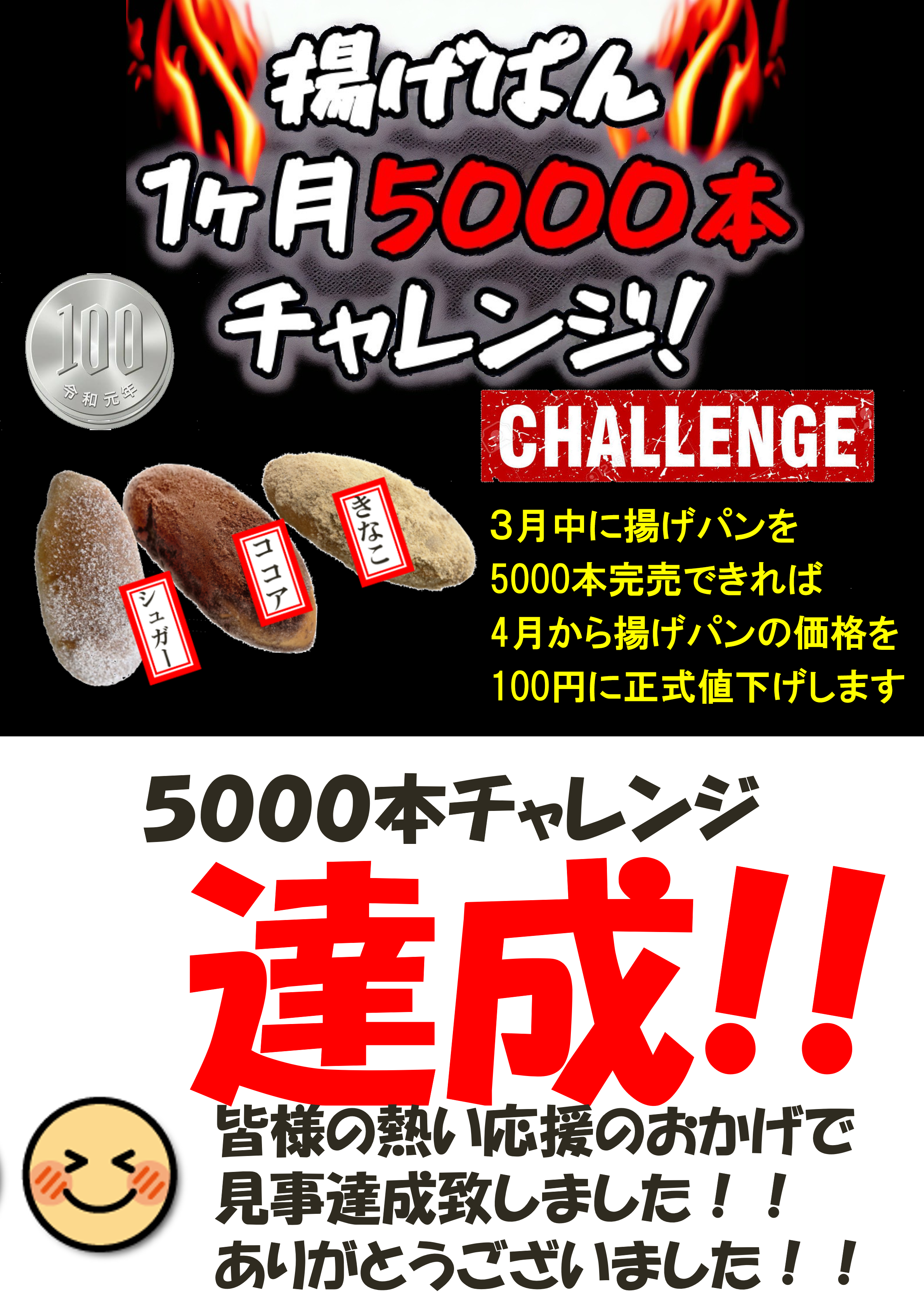 揚げパン5000本チャレンジ達成致しました!!和幸堂製パン大阪府吹田市のパン屋。