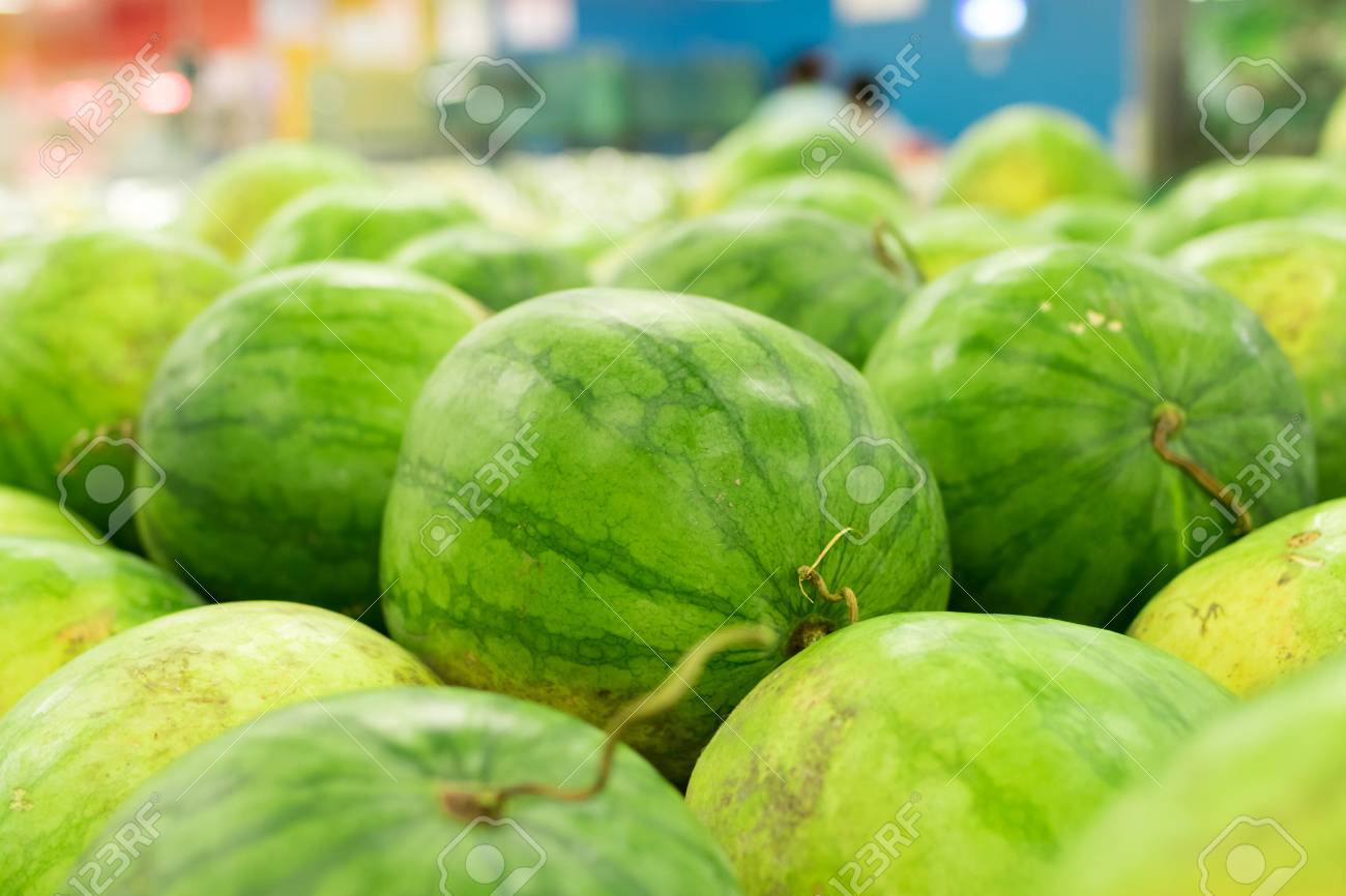 多くの大きな甘い緑のスイカは市場で売る。熱帯のバリ、インドネシアの地元の有機市場。スイカの背景。の写真素材・画像素材 Image 76579576。