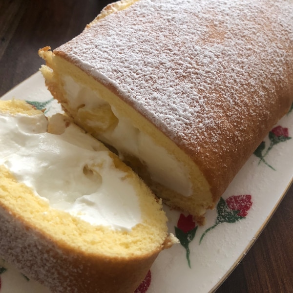 冷凍スポンジシート使用☆簡単パインロールケーキ。