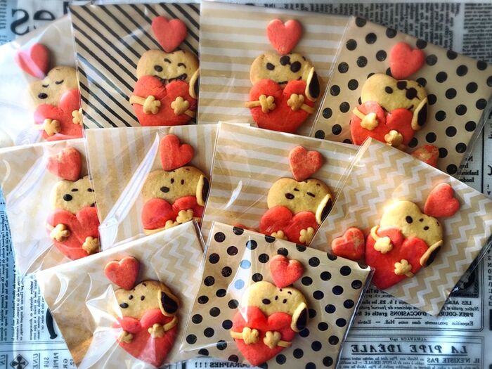 セリアのハート型で簡単可愛い♡スヌーピークッキー♡。