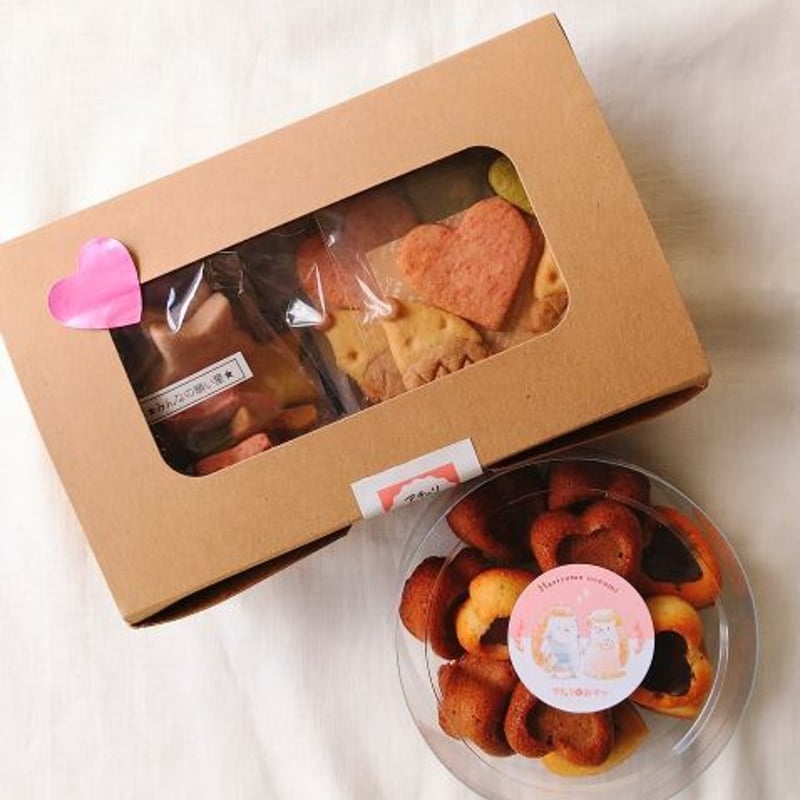 可愛い焼菓子BOX バレンタイン用ハートのフィナンシェ入りアチェリのおやつ。