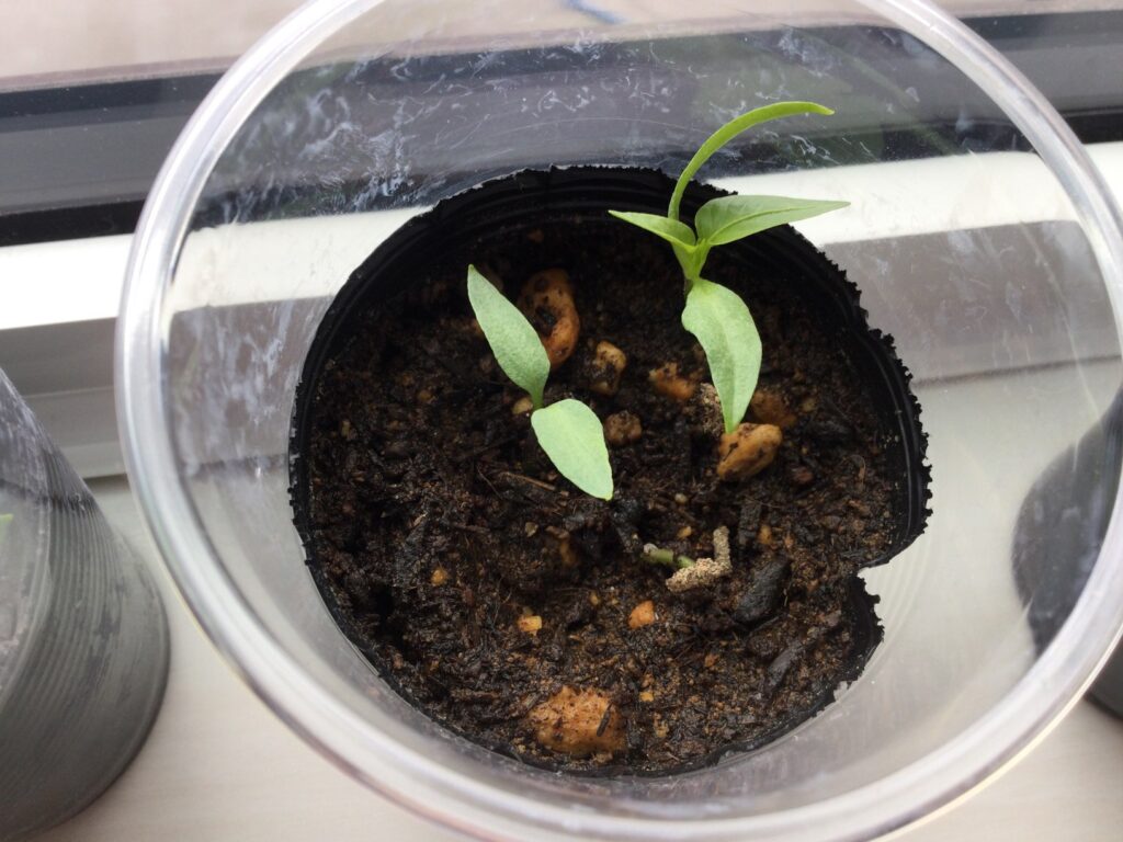どでかピーマンの発芽確認 – 観葉植物とプランター野菜。旅先の植物も楽しむ Apprécier les plantes d'intérieur etla nature。