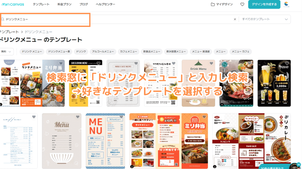 無料ドリンクメニューテンプレートでおしゃれにデザインCanva。