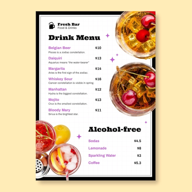 バー カクテル ドリンク メニュー テンプレート AI 無料ダウンロード - Pikbest。